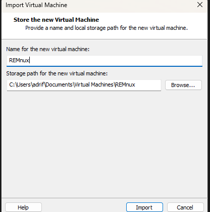 Ahora importamos el archivo que hemos descargado « REMnux OVA» en VMWare ,y iniciamos la máquina como tal de REMnux y verificamos que funciona bien.