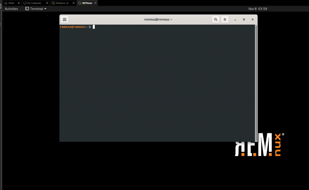 La siguiente máquina virtual en la que trabajaremos es REMnux. REMnux es un conjunto de herramientas Linux para ingeniería inversa y análisis de software malicioso. REMnux proporciona una colección de herramientas gratuitas creadas por la comunidad. Vamos a utilizarlo para investigar malware sin tener que buscar, instalar y configurar las herramientas.