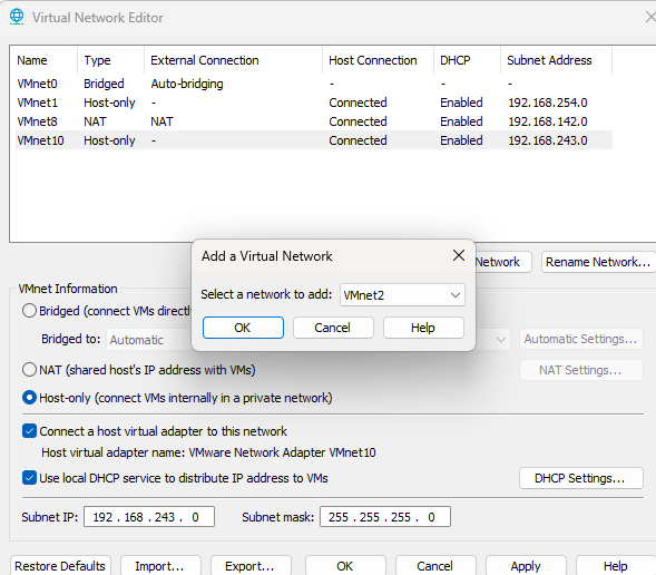 Seleccionamos cualquiera VMnet libre y pulsamos «Ok»