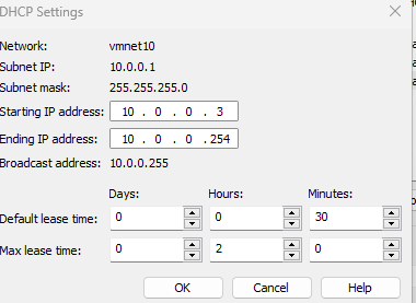 Pincharemos el botón «DHCP Settings» para establecer el rango de IPs a proveer.