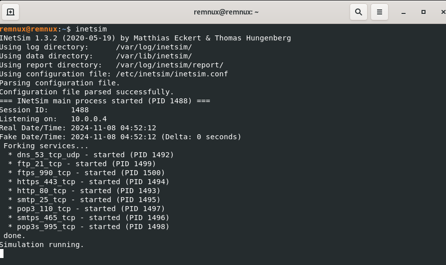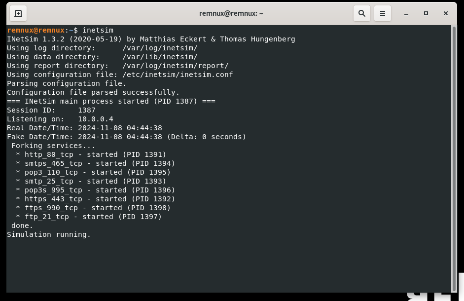 Comprobamos que efectivamente ya tenemos el dns activo cuándo ejecutamos el inetsim