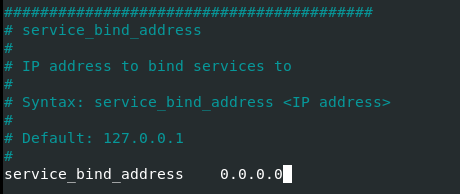Establecemos también la dirección de enlace de servicio a 0.0.0.0