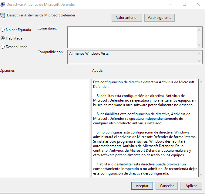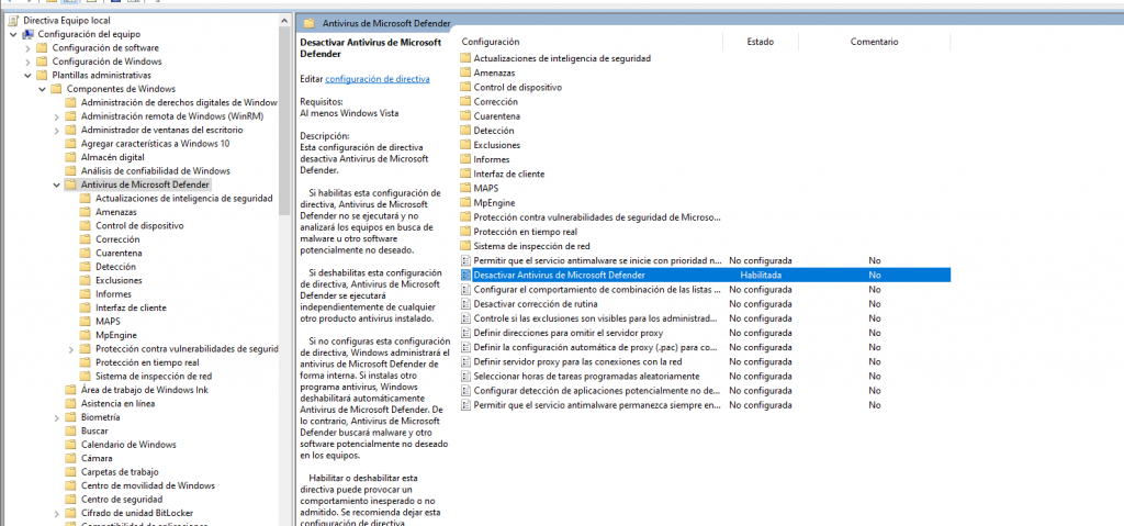 Desactivar Antivirus/Defender en la Política de Grupo (GPO)