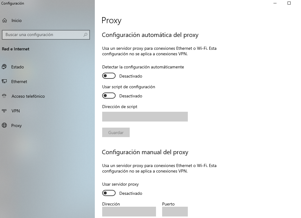 Desactiva el botón de «Detectar la configuración automáticamente».